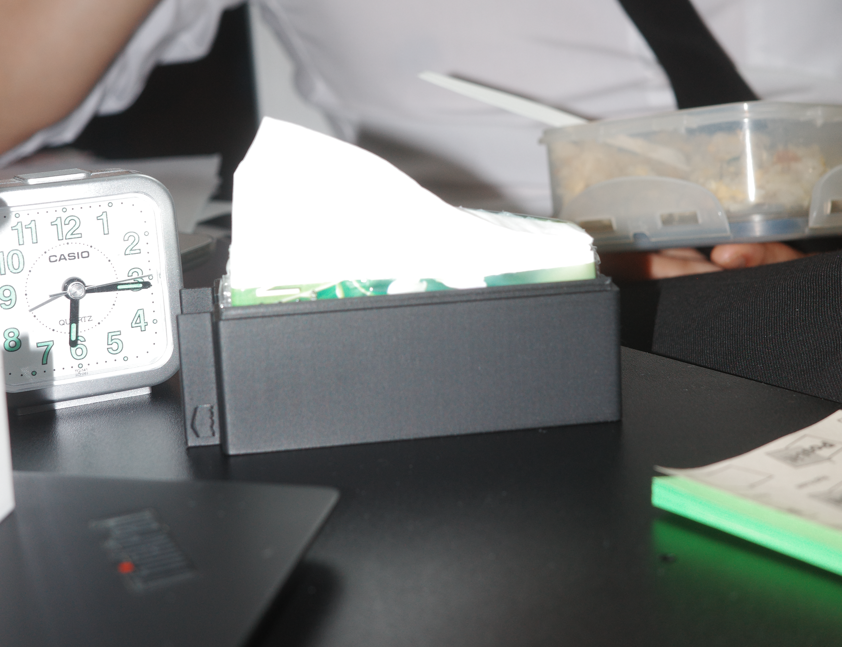CHOPE! is a physical manifestation of our ‘chope'-ing culture: The act of reserving seats with tissue packets. This object is both a tissue packet holder, and a tool to assert yourself in a uniquely Singaporean way.